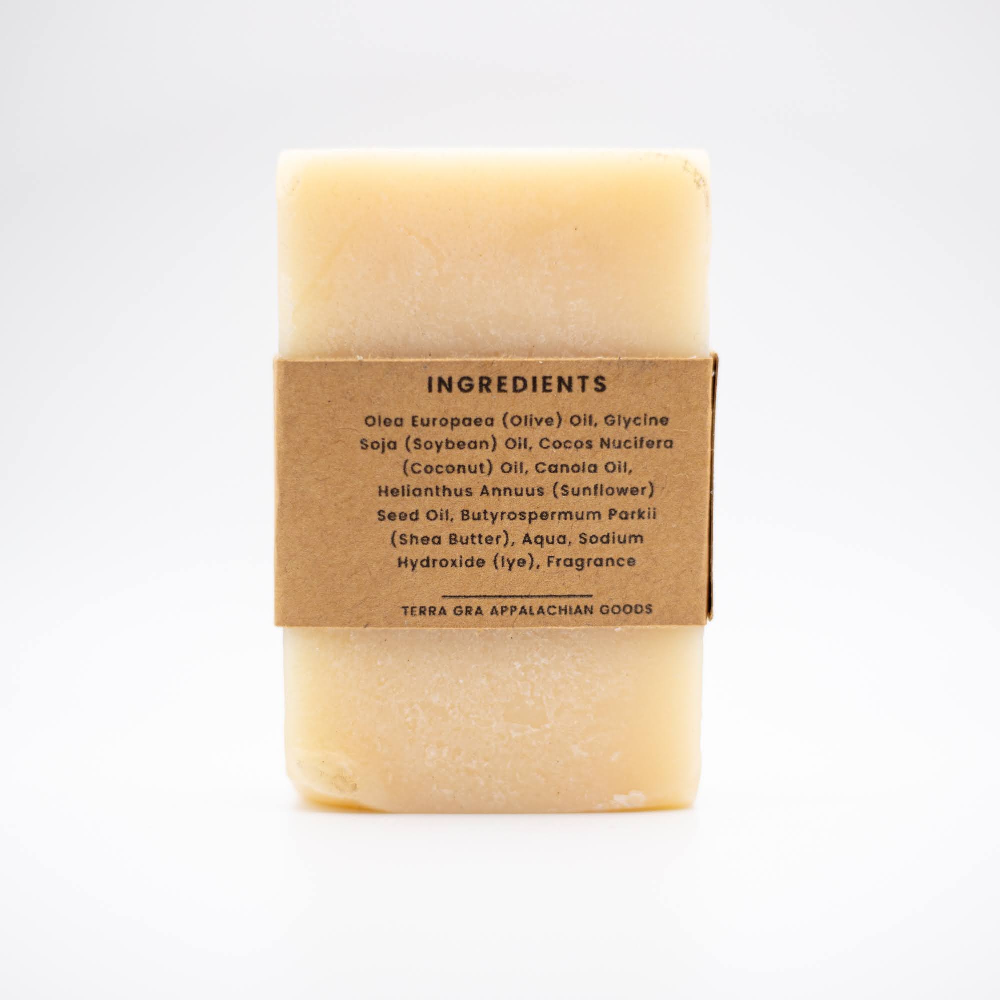 Ingredients: Olea Europaea (Olive) Oil, Glycine Soja (Soybean) Oil, Cocos Nucifera (Coconut) Oil, Canola Oil, Helianthus Annuus (Sunflower) Seed Oil, Butyrospermum Parkii (Shea Butter), Aqua, Sodium Hydroxide (lye), Fragrance