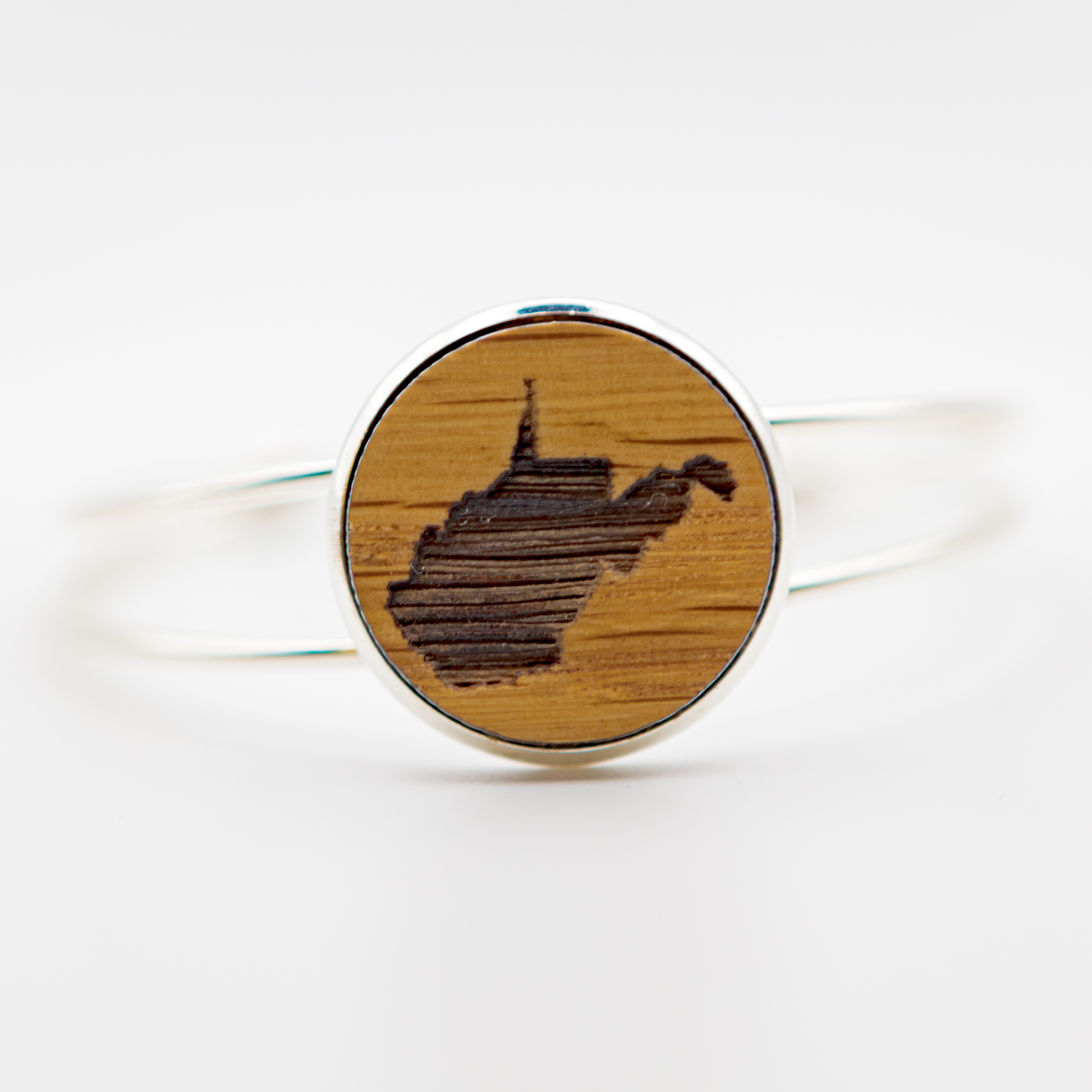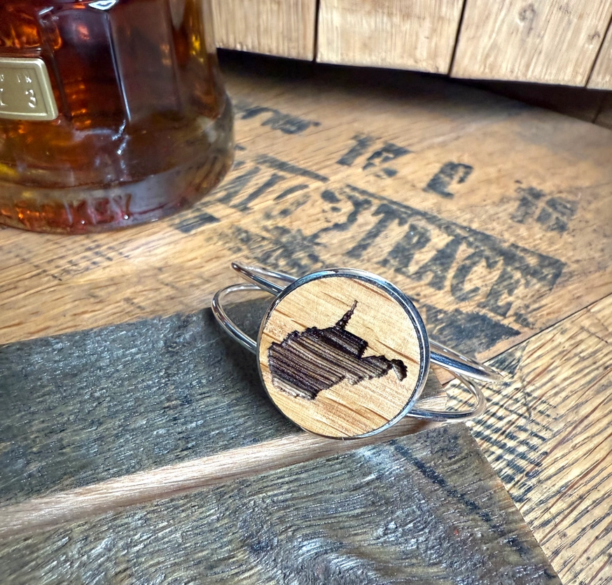 The stainless steel silver cuff is adjustable and flexible with a one-size-fits-style with a 1” diameter insert. A wonderful gift for the West Virginia lover in your life.