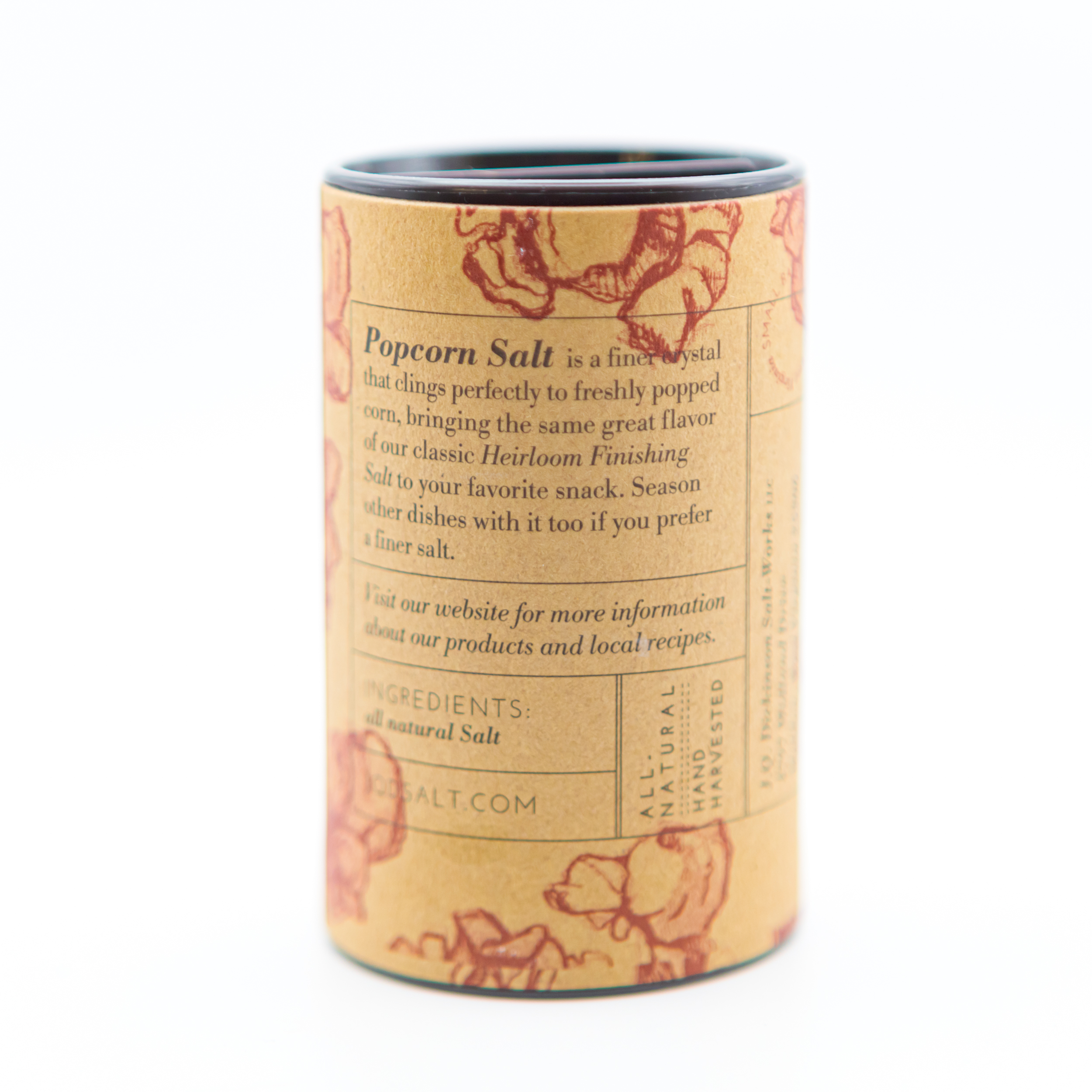 JQ Dickinson’s popcorn salt is their finest crystal size. Each shaker contains 3.5 ounces of salt and it can be shaken or poured. It clings well to popcorn but don’t stop there! It is great to use in baking or in stews, soups and sauces where it dissolves quickly.
